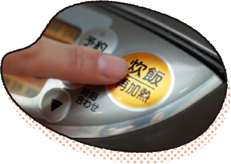 ここまでくれば後は基本的に炊飯器まかせ。できれば大きな釜でたくさん炊いた方が美味しくなります。炊き上がった後、炊飯器の蓋を閉めたまま10〜15分程度待ちます。(最近の炊飯器のほとんどは蒸らし機能が標準搭載されており、炊飯完了後に⾃動で蒸らし⼯程に⼊り、ご飯の⽔分と熱を均⼀にして美味しく仕上げます。取扱説明書を確認してみましょう。)最後に、お釜の底から混ぜ返すように軽くほぐします。これにより全体の⽔分が均⼀になり、しかも余分な⽔分は⾶んで、ふっくらとした良い⾷感に仕上がります。