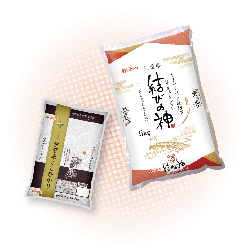 おいしさに高い評価を得ている「伊賀米こしひかり」をはじめ、三重県が開発した新ブランド米「結びの神」など、多種多彩な商品を積極的に販売しています。