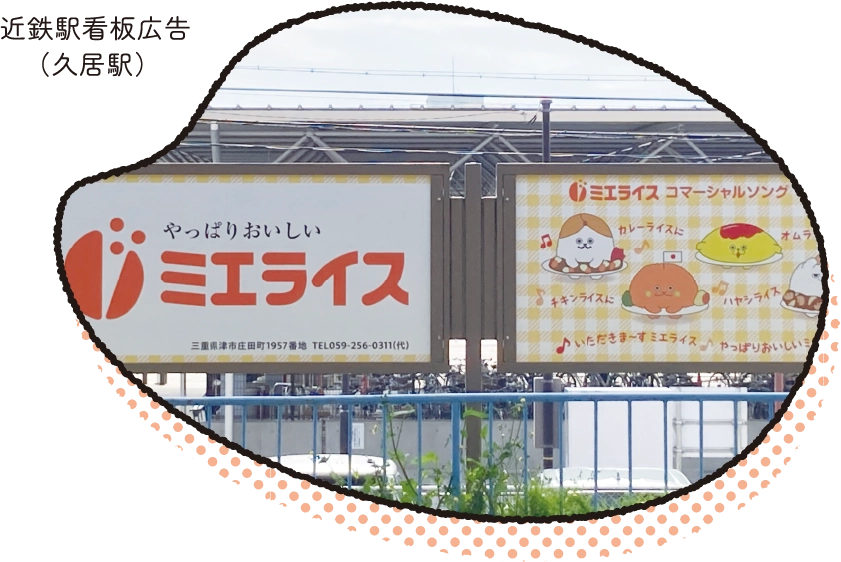 設立から60年を超えて地域密着で活動を続けるミエライスは、三重県の皆様から大きな信頼をいただいています。テレビでお馴染みのCMソングや、近鉄沿線で駅看板広告を実施しています。