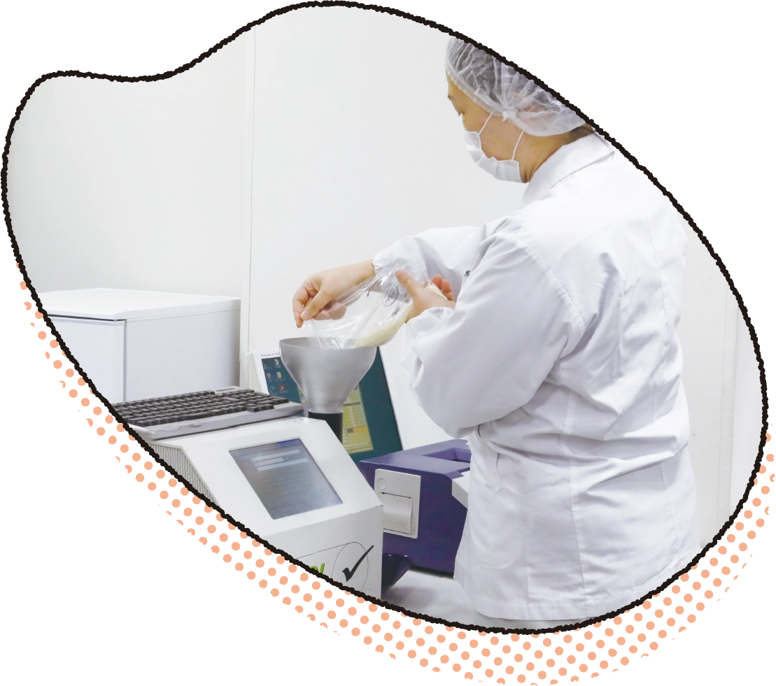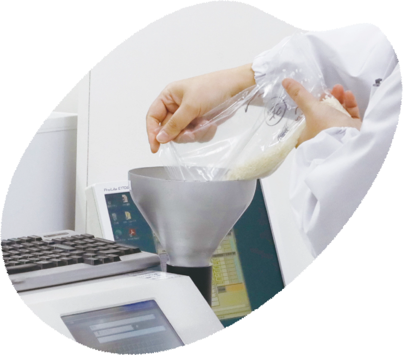 品質管理室では入荷時の玄米のチェックをはじめ、