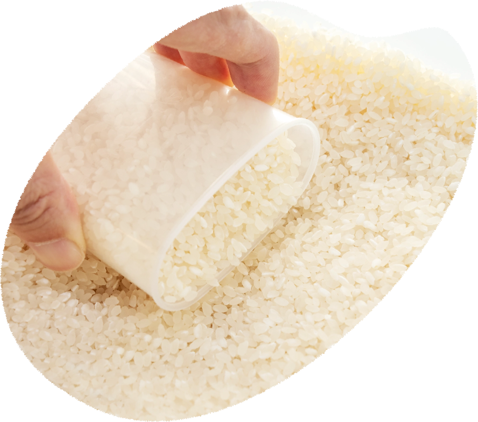 精米技術の進んだ現在では、お米は「研ぐ」というより「洗う」ぐらいがちょうどよい力加減。むしろ大切なのは洗いにかける時間です。お米は水分を吸収しやすいので、ぬか臭さを吸わせないように手早く行うことが重要です。まずはたっぷりの水を使ってさっと洗い流します。その後、水をきった状態で、指を立てて大きな円を描くようにシャカシャカとかき混ぜます。炊く量によって回数を調整するのがコツです。