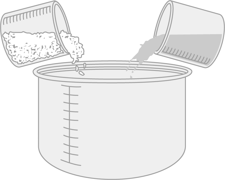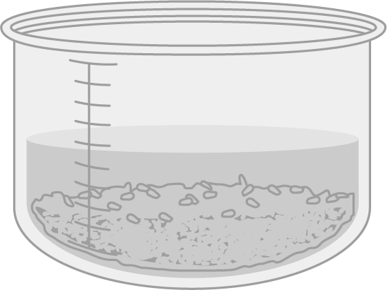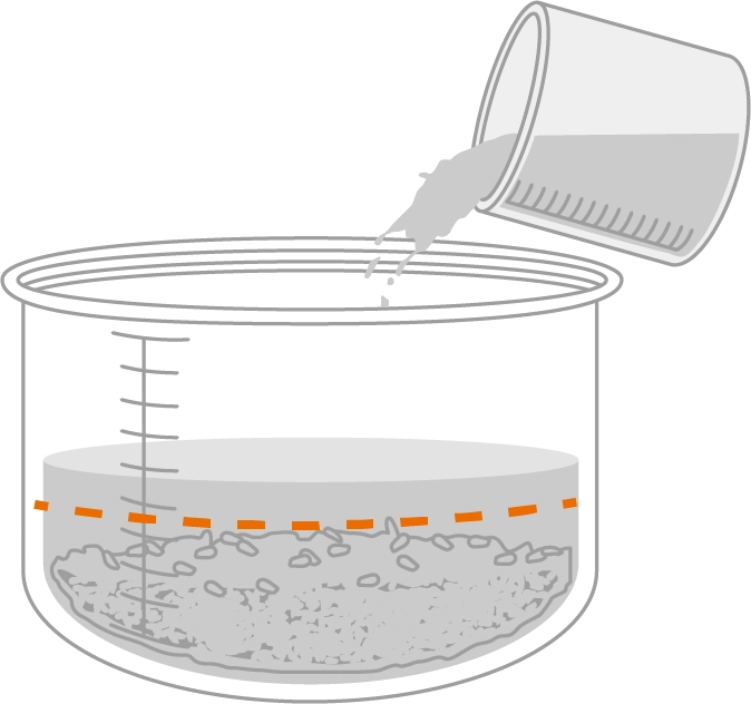 水を入れたら、お釜の底からやさしく数回かき混ぜてお米と水をよくなじませ、その後30分以上水に浸してから炊いてください。