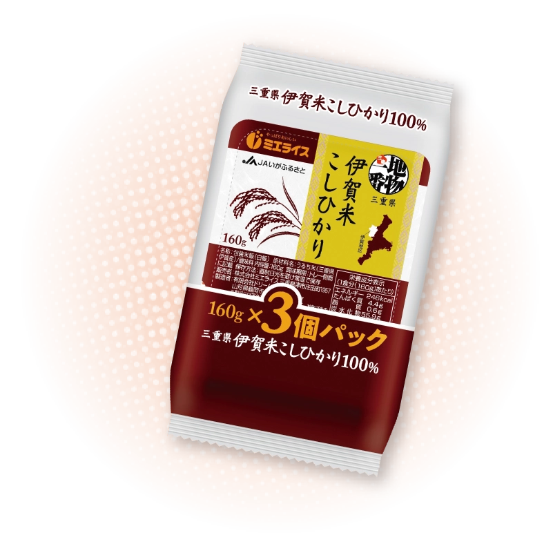 津市の新たなブランド米「TSUGOME」の販売をはじめ、三重県のブランド米「伊賀米こしひかり」を使用したパックごはんの開発など、様々な角度から地産地消に貢献しています。